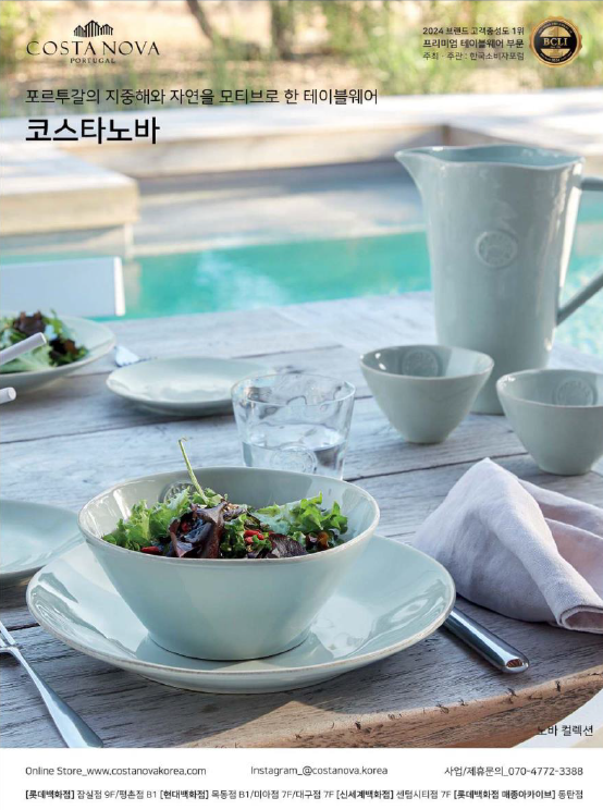 Temos o orgulho de partilhar que a COSTA NOVA ganhou o prémio na categoria de premium tableware nos Brand Customer Loyalty Awards 2024. Este prémio, organizado pelo Korea Consumer Forum e patrocinado pelo Korea Economic Daily, destaca o nosso compromisso com a qualidade e a satisfação do cliente. Entre 9 marcas conhecidas, a COSTA NOVA foi escolhida numa sondagem de mais de 124.000 participantes, com mais de 2.000 a votarem especificamente na categoria de premium tableware. A cerimónia de entrega dos prémios foi realizada no Hotel Conrad em Yeouido e transmitida ao vivo no YouTube. Agradecemos aos nossos clientes e parceiros coreanos pelo seu apoio. Este reconhecimento reflete a nossa dedicação em fornecer tableware de excelente qualidade.