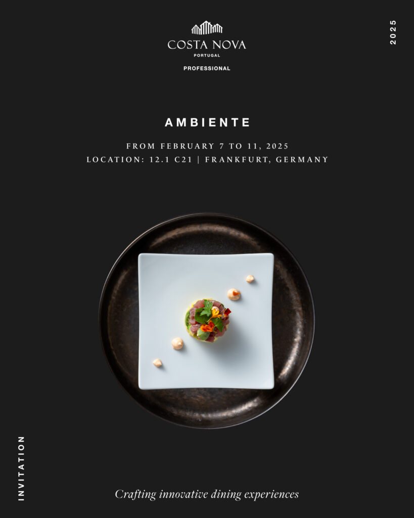 O Grupo COSTA NOVA Industria estará presente na edição de 2025 da Ambiente, em Frankfurt, com dois stands e com duas áreas de negócio distintas. A Grestel marcará presença no Hall 12.0 (stand D20) e a COSTA NOVA apresentar-se-á com um novo stand no Hall 12.1 C21.