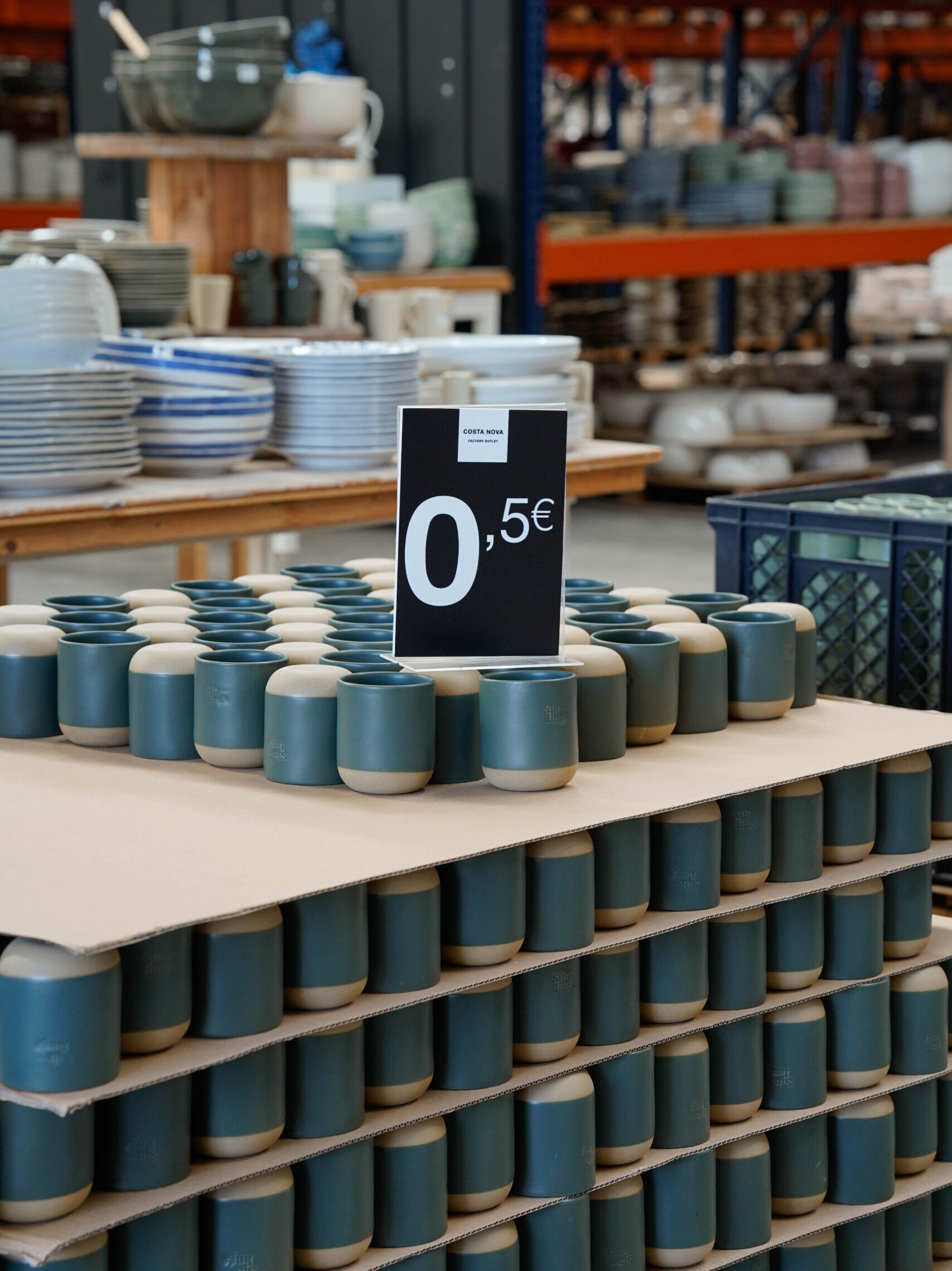 O COSTA NOVA Factory Outlet, localizado em Vagos, Aveiro (Portugal), é um exclusivo para artigos com desconto e peças de segunda qualidade produzidos nas fábricas da COSTA NOVA Industria. Assente em princípios de sustentabilidade e de economia circular, a loja disponibiliza uma vasta seleção de coleções em cerâmica, incluindo peças descontinuadas da COSTA NOVA, excedentes de produção e artigos de segunda escolha de elevada qualidade.